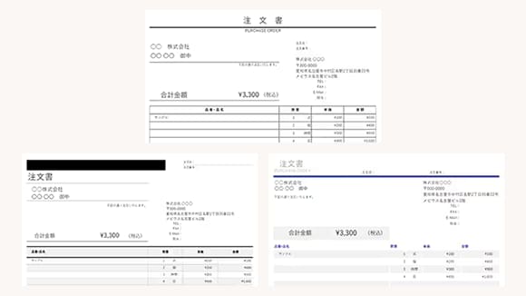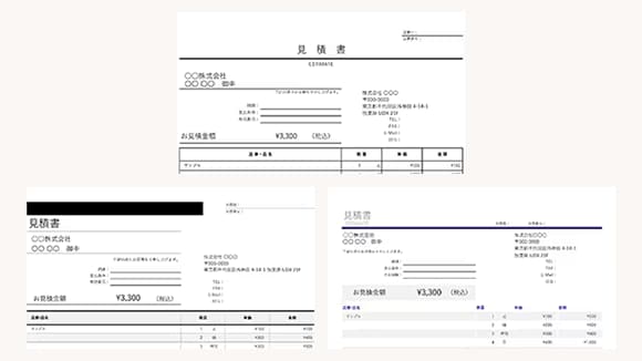 見積書、請求書、納品書、注文書、領収書がすぐに作成できる無料のExcel(エクセル)テンプレートがおすすめです。必要項目と計算式があらかじめ設定されているので、記載方法やルールがわからなくても簡単に各種帳票の作成が可能です。