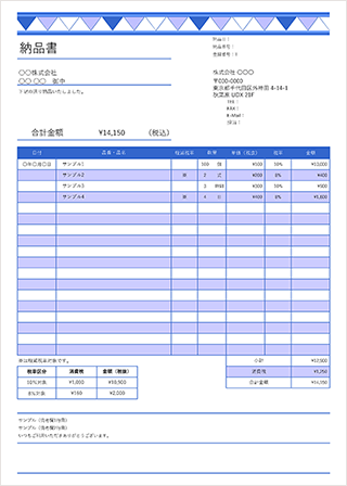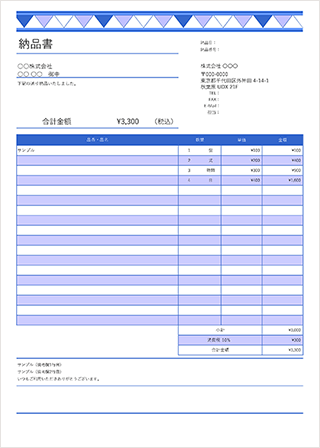 あらゆる企業で、自由自在に作成出来るブルーフラグの納品書です。