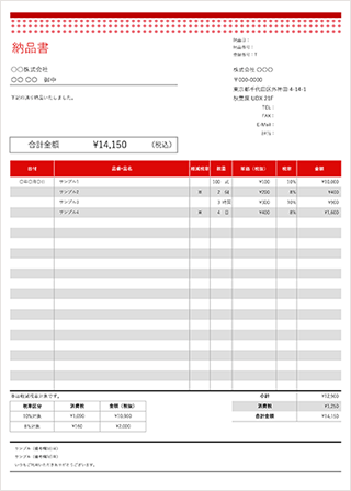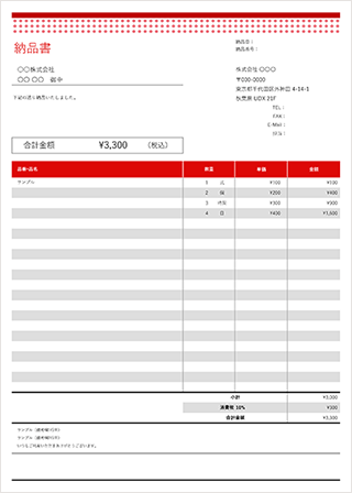納品書テンプレート ドットレッド