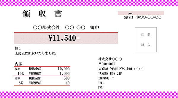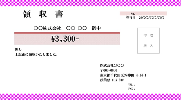 領収書テンプレート 市松模様 ピンク