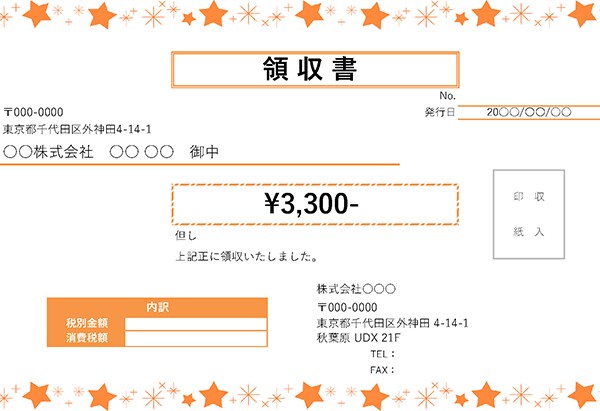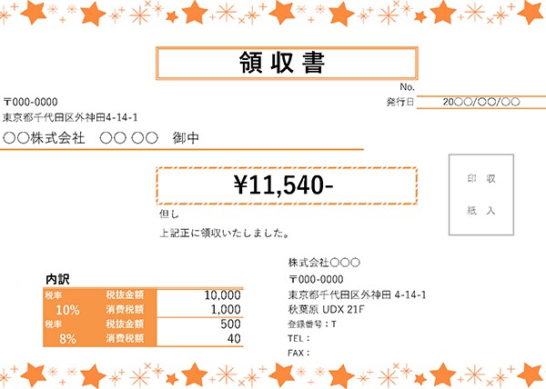 領収書の上下部分にスター オレンジがあしらわれたデザインとなっています。