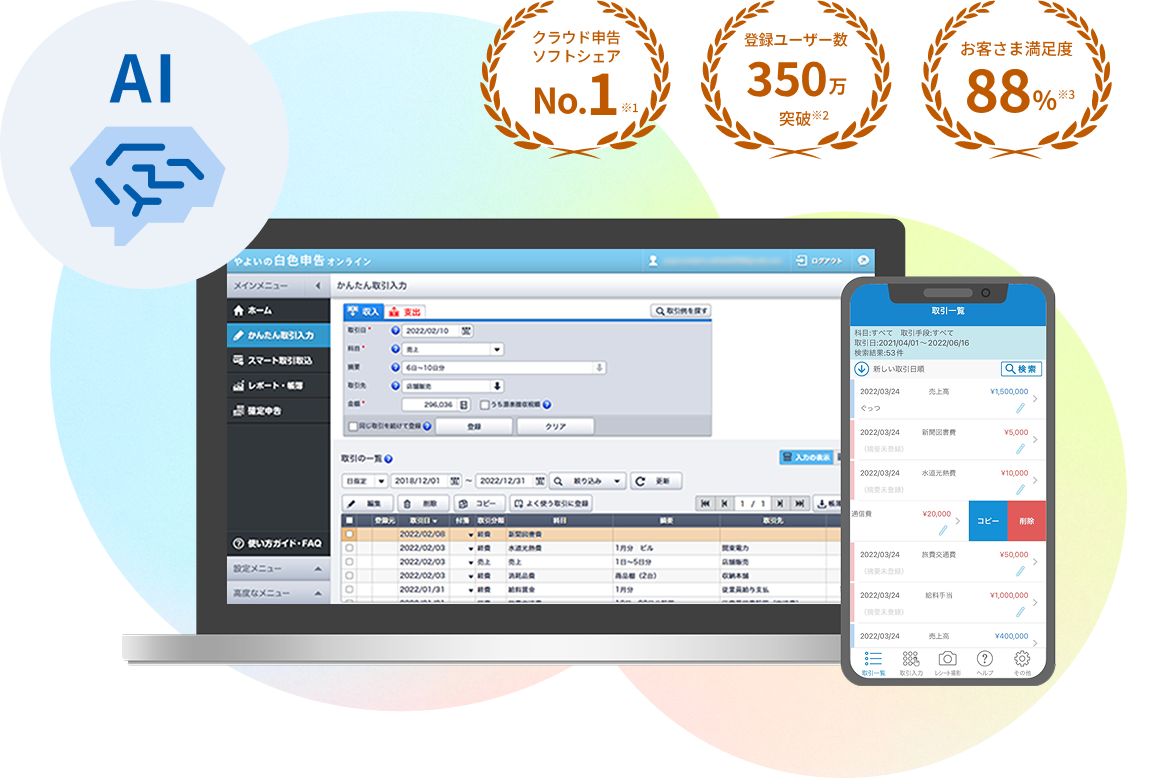 弥生はシェアNo.1。AIによる効率化の機能も多く利用され、確かな実績があるからあんしんです。もし操作や実務で迷った時は、経験豊富なスタッフが電話やチャットで直接サポート。