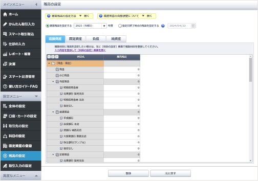 固定資産・残高の設定はこちらの動画をご参照ください。