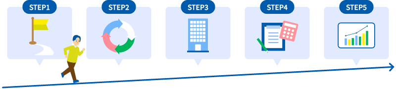 | STEP3 設立 | 設立直前〜設立日 | 必要書類を準備し、資本金の払い込みおよび登記申請を行う |