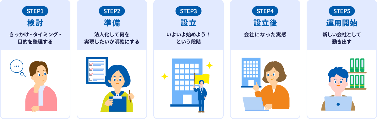 法人成りの流れ(心理+実務+期間をつなぐ5ステップ構成)