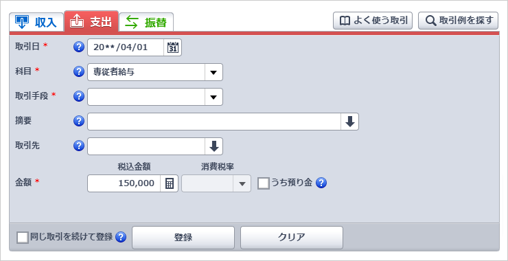 例えば、プライベートの預金口座に事業のお金が振り込まれるなど、事業とプライベートの入出金が混在するケースです。決算書に預金残高を正しく計上するためにプライベートの取引も帳簿入力が必要になります。