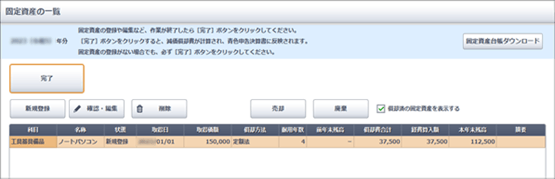 [固定資産の一覧]に登録した内容に漏れ、間違いがないか確認する