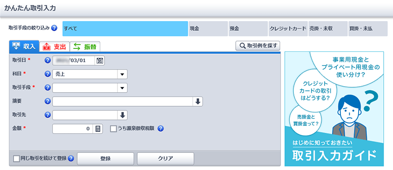1月~12月までの売上や仕入、経費などの取引を漏れなく入力しておきます。