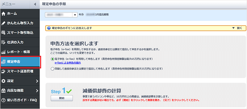 どちらを選択するかによって、青色申告特別控除額が変わります。2Step 1