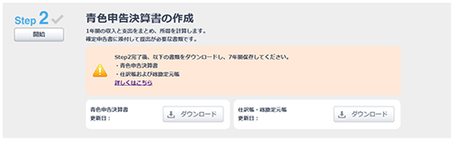 「Step2 青色申告決算書の作成」では、申告者本人やその家族の情報、売上先や仕入先の情報を入力したり経費の家事按分を行い、青色申告決算書を作成します。