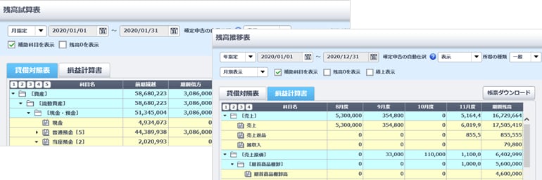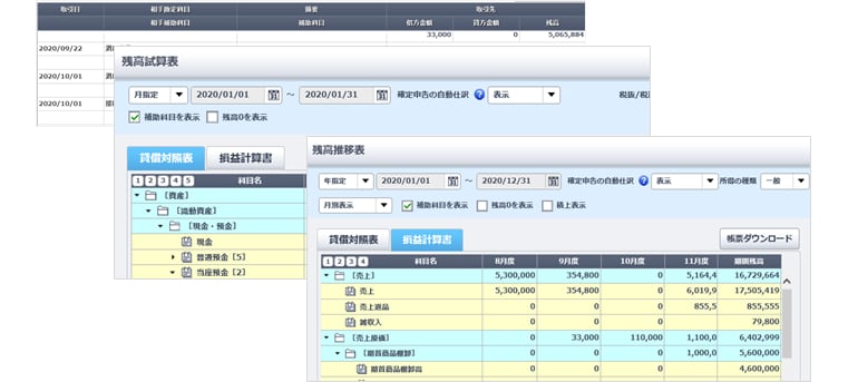 [帳簿][残高試算表][残高推移表]を確認して、正しい金額に更新されていることを確認します。