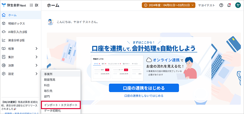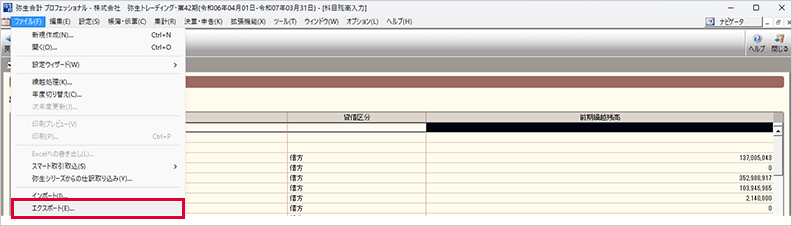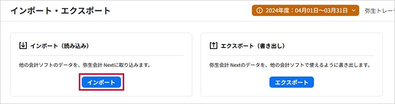 弥生会計(デスクトップ)から期首残高データをエクスポートして、会計期間の期首日と一致していることを確認したうえで、弥生会計 Nextにインポートします。