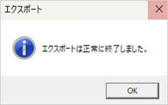 「エクスポートは正常に終了しました。」のメッセージが表示されたら[OK]をクリックします。