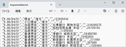 弥生会計(デスクトップ)でエクスポートしたファイルを開いて、記述されている日付が弥生会計 Nextの会計期間の期首日と一致することを確認します。