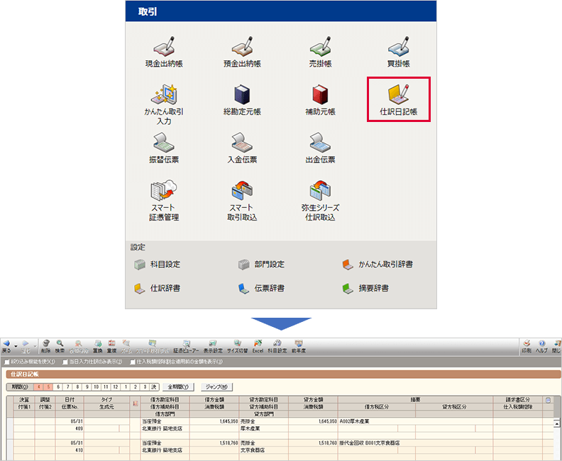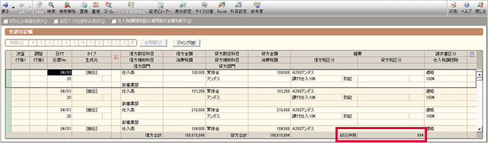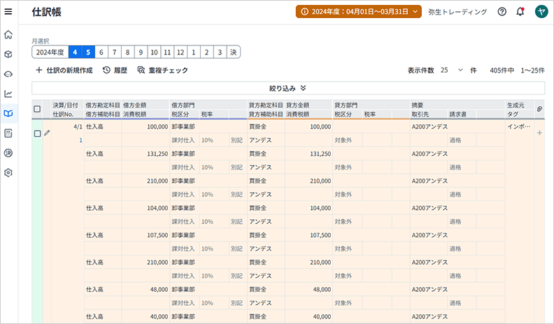 インポートが完了すると仕訳帳が表示され、インポートされた仕訳を確認できます。