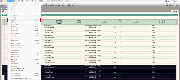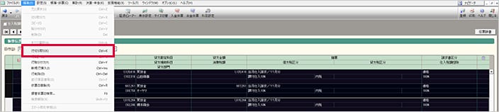 20行を超える仕訳データを選択し、編集メニューから「行コピー」を選択します。
