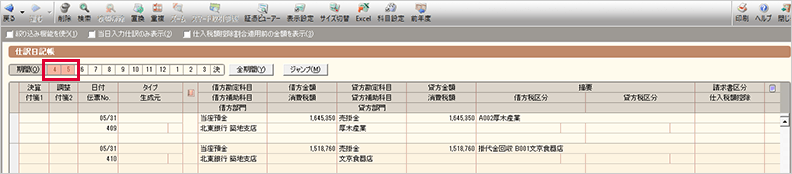 クイックナビゲータの[取引]カテゴリの[仕訳日記帳]をクリックして、[仕訳日記帳]画面を開きます。