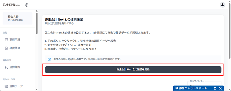 「弥生会計 Next」との連携設定を行うことで、「弥生経費 Next」で承認された経費を「弥生会計 Next」へ仕訳連携できます。
