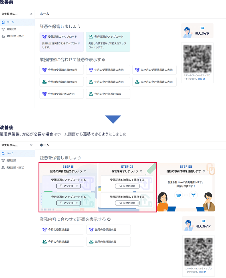 これにより、弥生会計 Nextへの連携が未完了の場合、ホーム画面の[証憑の確認]から確認しやすくなりました。