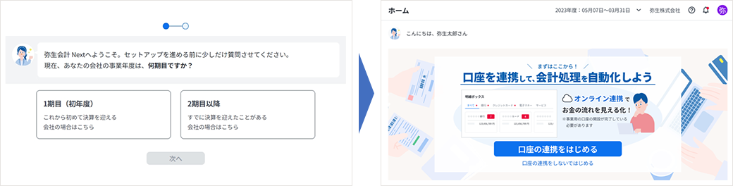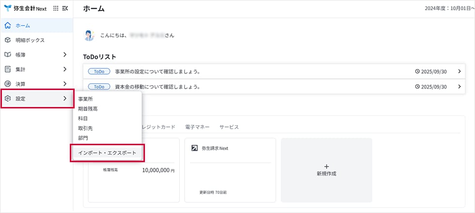 「弥生会計 Next」にログインするとホーム画面が表示されます。