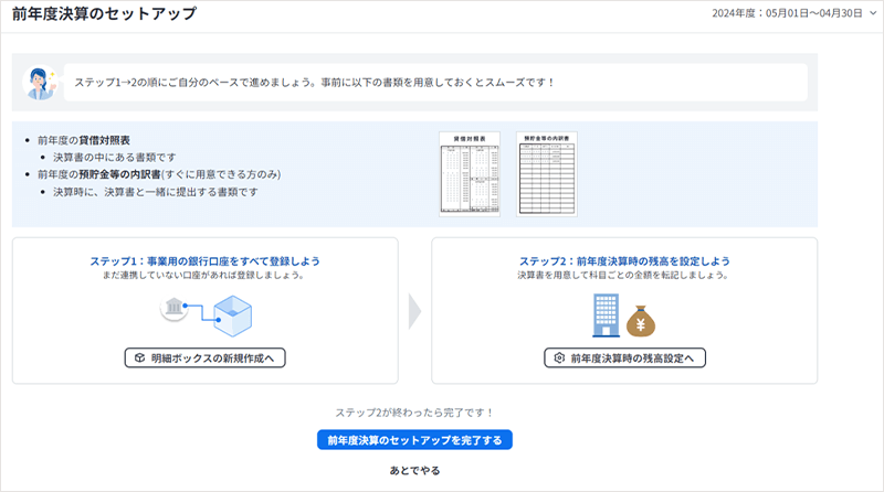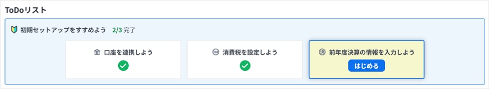 初期セットアップを完了しておくと、日々の会計処理をスムーズに開始できます。