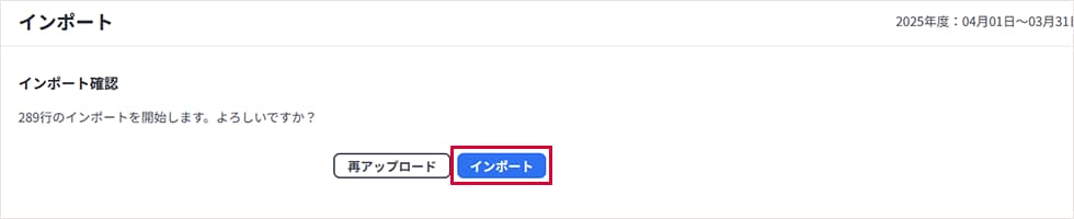 インポートファイルのアップロード手順は期首残高データも同様です。