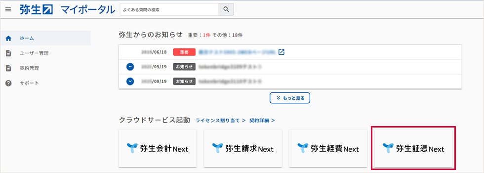 マイポータル(Web)にログインして、「弥生証憑 Next」を起動します。