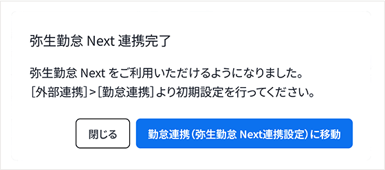 下記設定がすべて終わっている場合、「勤怠連携(弥生勤怠 Next連携設定)に移動」をクリックし、弥生勤怠 Nextに従業員情報を連携できます。