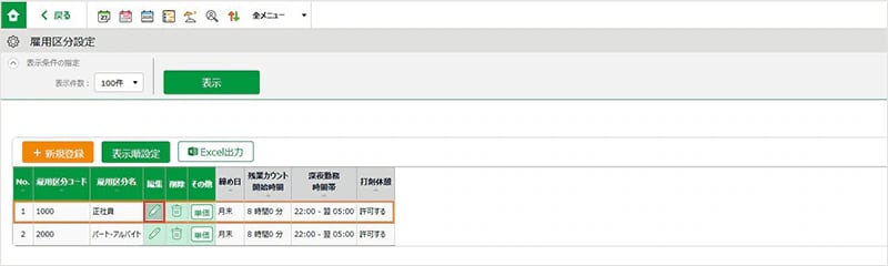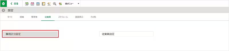ホーム画面 で「設定」を開き、「従業員」▶「雇用区分設定」 を選択します。