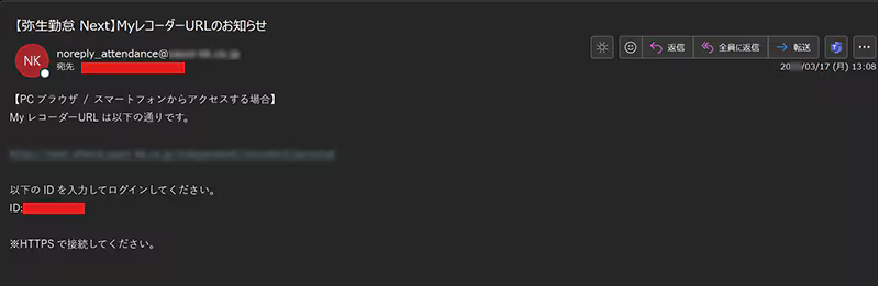 メールが届いたら、MyレコーダーURLにログインし打刻を開始します。