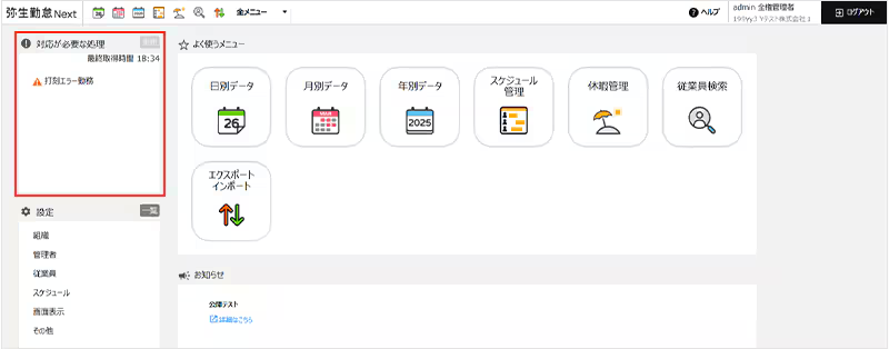 弥生勤怠 Nextで勤怠を締め、エラーがないことを確認