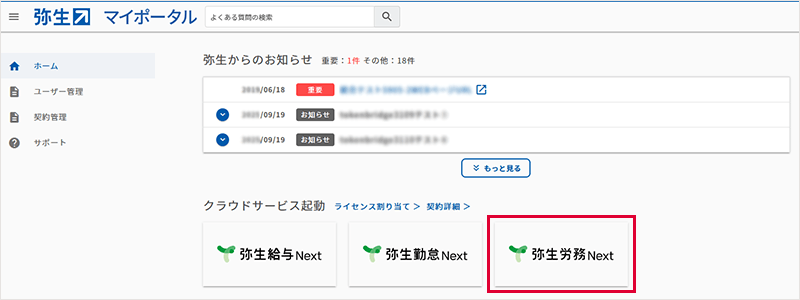 マイポータルから「弥生労務 Next」を起動します。