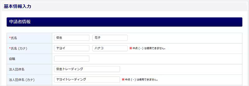 2.申請内容の入力