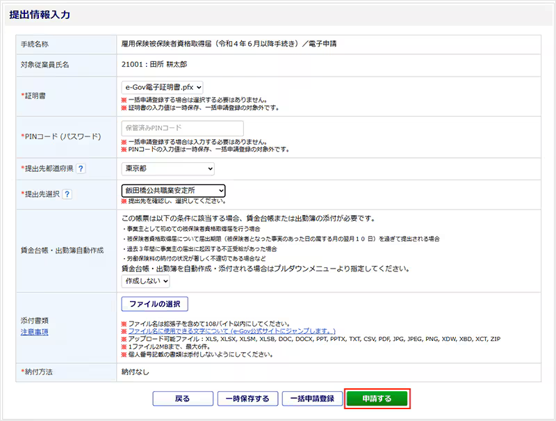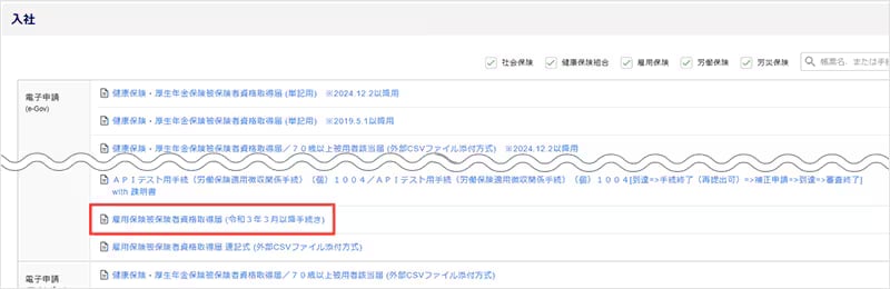 ここでは雇用保険被保険者資格取得届を例にご案内します。