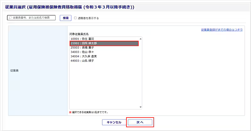 対象従業員を選択し、[次へ]をクリックします。