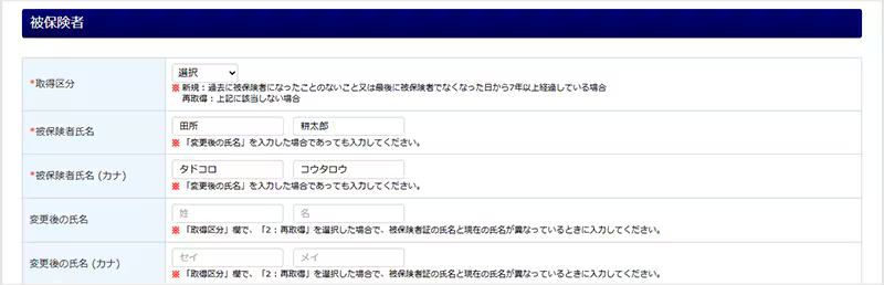被保険者欄へ反映されている内容を確認、必要に応じて修正します。