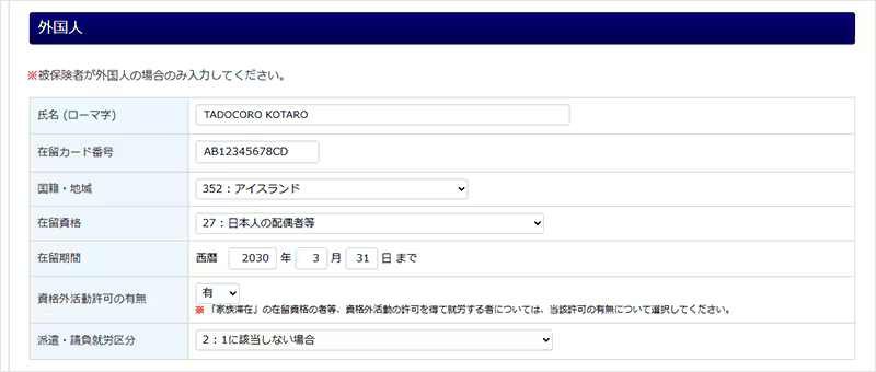 被保険者が外国人の場合のみ、外国人欄もご入力ください。