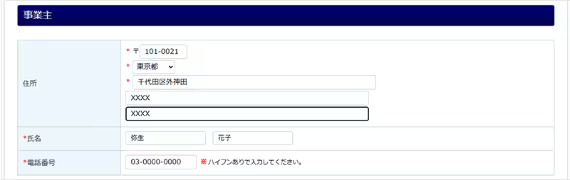 事業主欄へ反映されている内容を確認、必要に応じて修正します。