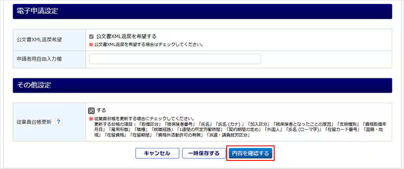 画面に沿って必要な内容を設定したら、[内容を確認する]をクリックします。