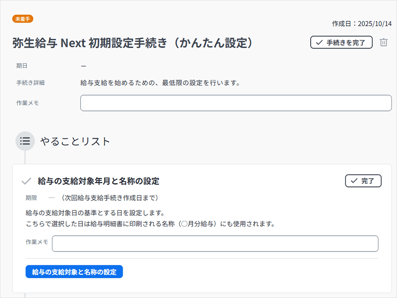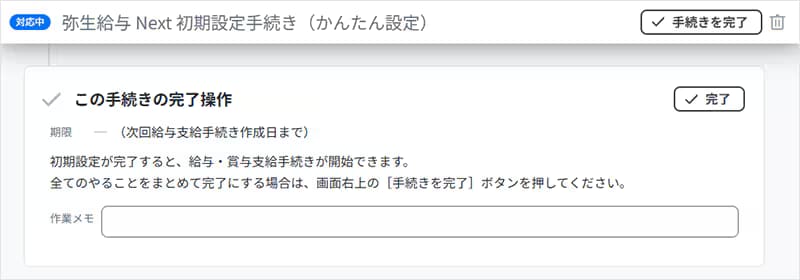 [セットアップの種類]を選択すると、初期設定手続きが作成され、やることリストが表示されます。