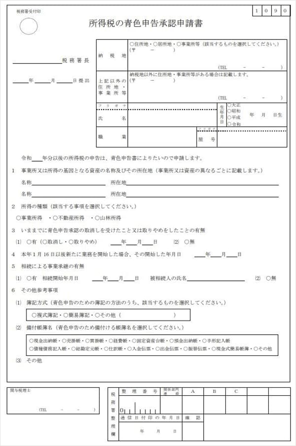 青色申告を選ぶ場合、申告をしようとする年の3月15日まで(新規開業の場合は、原則として開業から2か月以内)に「所得税の青色申告承認申請書」を管轄する税務署に提出しなければなりません。