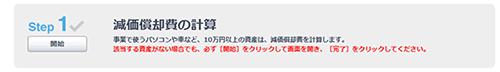 「Step1 減価償却費の計算」では、[固定資産の登録]に登録した固定資産をもとに減価償却仕訳を自動作成します。また、登録が漏れていた固定資産はこの画面で登録することができます。