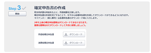 「Step3 確定申告書の作成」では、給与所得や公的年金などの事業以外の所得や、社会保険料や生命保険料、医療費、ふるさと納税などの寄附金、住宅ローン控除などの控除についての情報を入力し、確定申告書を作成します。