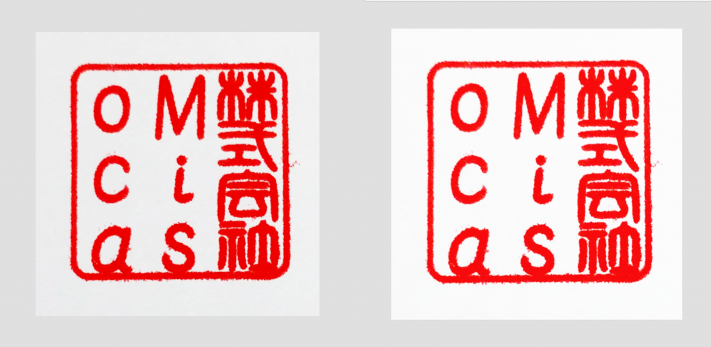 印鑑に合わせてトリミングするだけでは、背景がくすんでいます。
