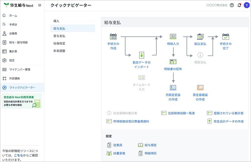 2026年02年25日弥生給与 Nextの操作の流れがわかるクイックナビゲーターの機能がリリースされました