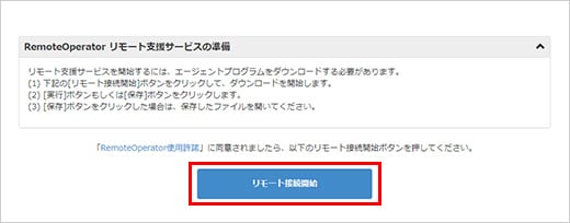 表示された画面の「リモート接続開始」をクリックして、プログラムダウンロードを開始します。
