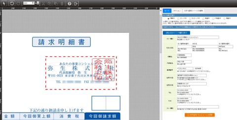 名入れ情報を入力するだけ。最適なバランスで自動レイアウト。社印作成機能を搭載!